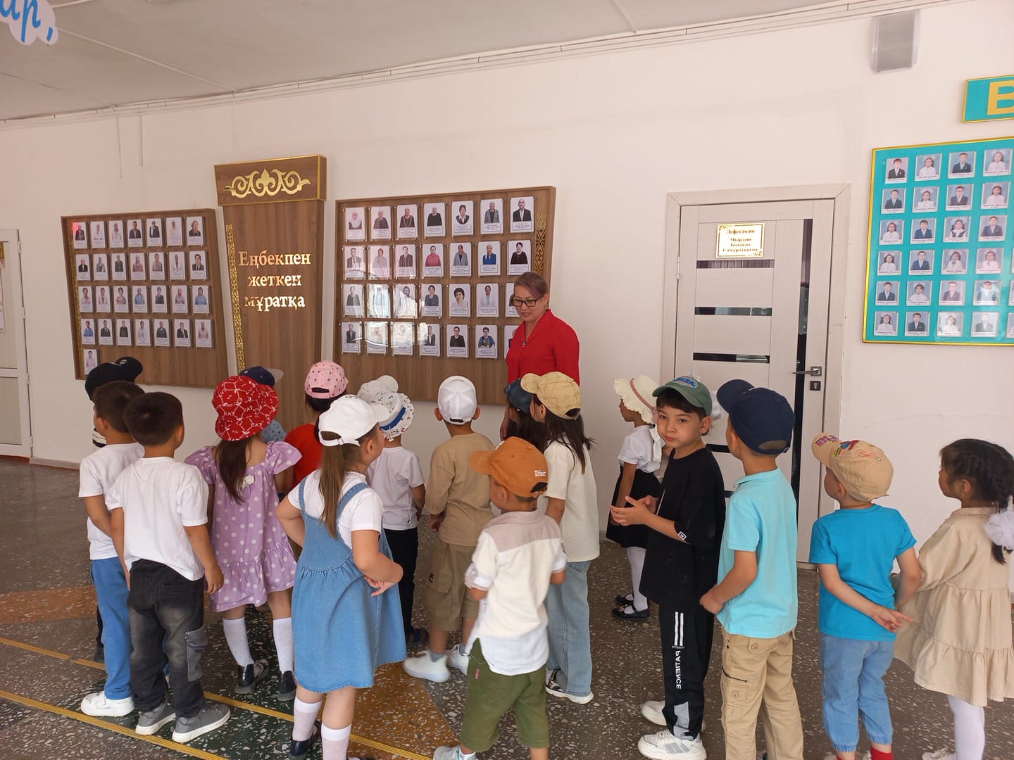 Әрі қарай балалар мектеп кітапханасымен таныстырылды. Мұнда мектеп жасына дейінгі балалар мектепте кітапхананың не үшін қажет екенін біліп, “кітап өмірінен”көптеген жаңа нәрселерді білді. Сондай-ақ кітапхана қызметкерлері балаларға кітаптарға ұқыпты қарау керектігін түсіндірді. Балаларға мектеп асханасына бару да қызықты болды. Мектептен шыққан кезде балалар дәлізде түрлі грамоталар, дипломдар, кубоктар көрді. Олар қуана-қуана қарай бастады және мектеп марапаттары аясында суретке түсуге шешім қабылдады. Мүмкін болашақта олардың кейбір мектеп жасына дейінгі балалары өздерінің сүйікті мектептері үшін марапаттарға ие болады. Мектепке Экскурсия балаларға өте ұнады және жаңа әсерлер мен жағымды эмоцияларға толы барлығы балабақшаға аман есен оралды!