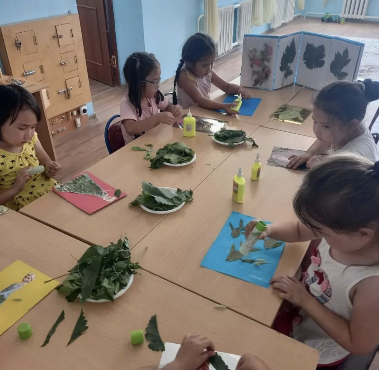 Ертөстік тобы Тәрбиеші: Кенбейлова Нұргүл Тақырыбы: Гербарий күні, кепкен жапырақтардан түрлі бейнелер жасау