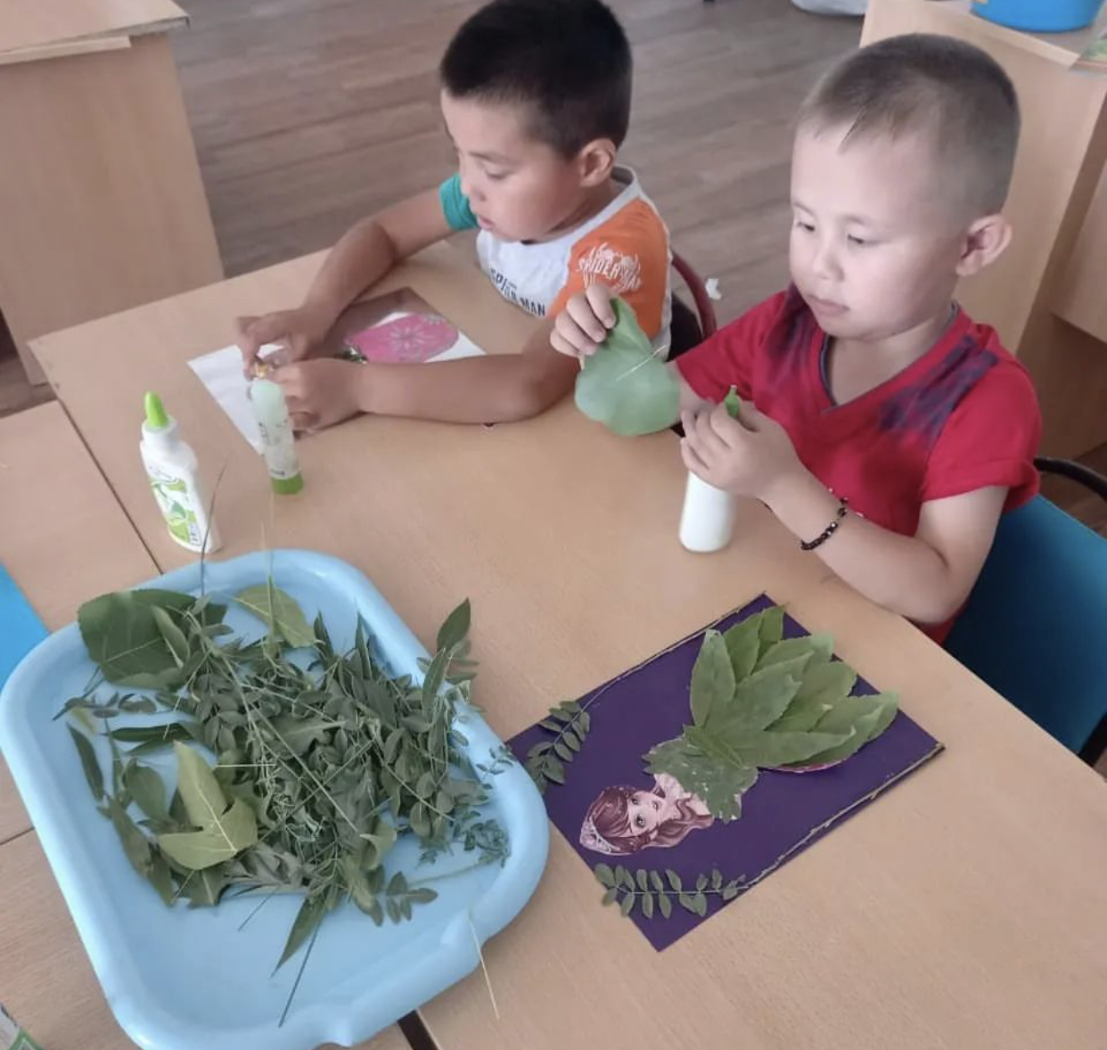Ертөстік тобы Тәрбиеші: Кенбейлова Нұргүл Тақырыбы: Гербарий күні, кепкен жапырақтардан түрлі бейнелер жасау