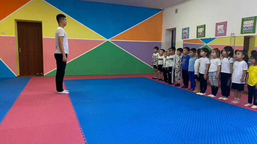 "Балдырған" мектепалды тобында өткен дене жетекшісі Өмірзақ Нұралының ойын әрекетінен үзінді