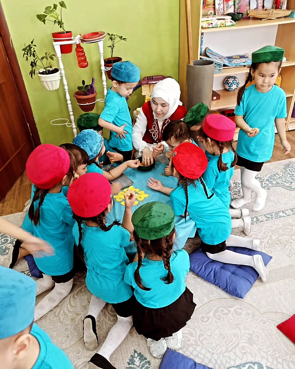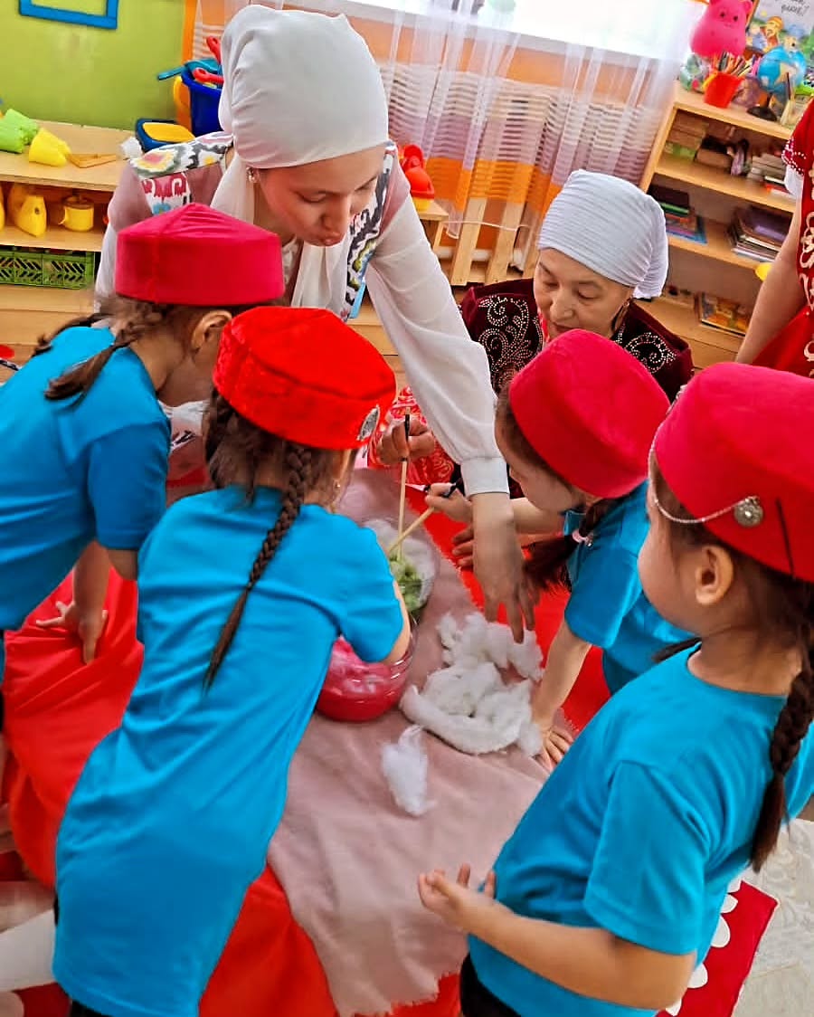 "Ертөстік" ересек тобының тәрбиешісі Күзембаева Гүлнұр "Халық дәстүрі-асыл қазынам" атты Аналар мектебімен жұмыс жасады. Міндеті :Халық дәстүрін дәріптеу ұлттық құндылықты насихаттау,бала бойына салт-дәстүрді сіңіру.Аналарды балабақша өміріне араластыра отырып тәрбиелік іс-шараларға жұмылдыру.